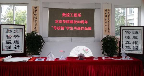 在2015年11月8日学院建校80周年校庆日之际,数控工程系在第二实训中心门厅内外隆重举办校庆“母校情”学生书画作品展。
